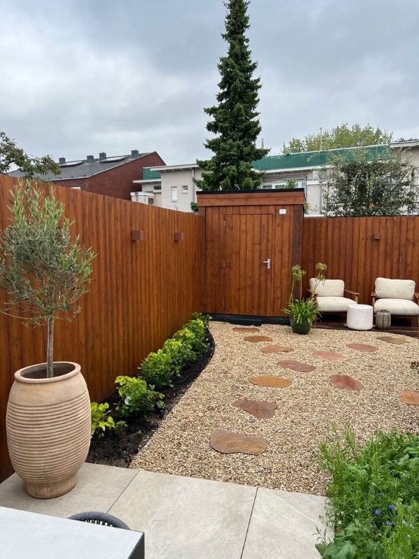 Deze tuinrenovatie laat zien dat ook een kleine stadstuin kan worden omgetoverd tot een volwaardige leefruimte met karakter, comfort en een sterke visuele identiteit.