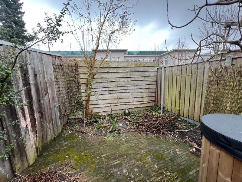 - De hardhouten schutting zorgt voor privacy en een warme uitstraling