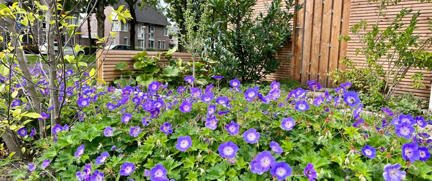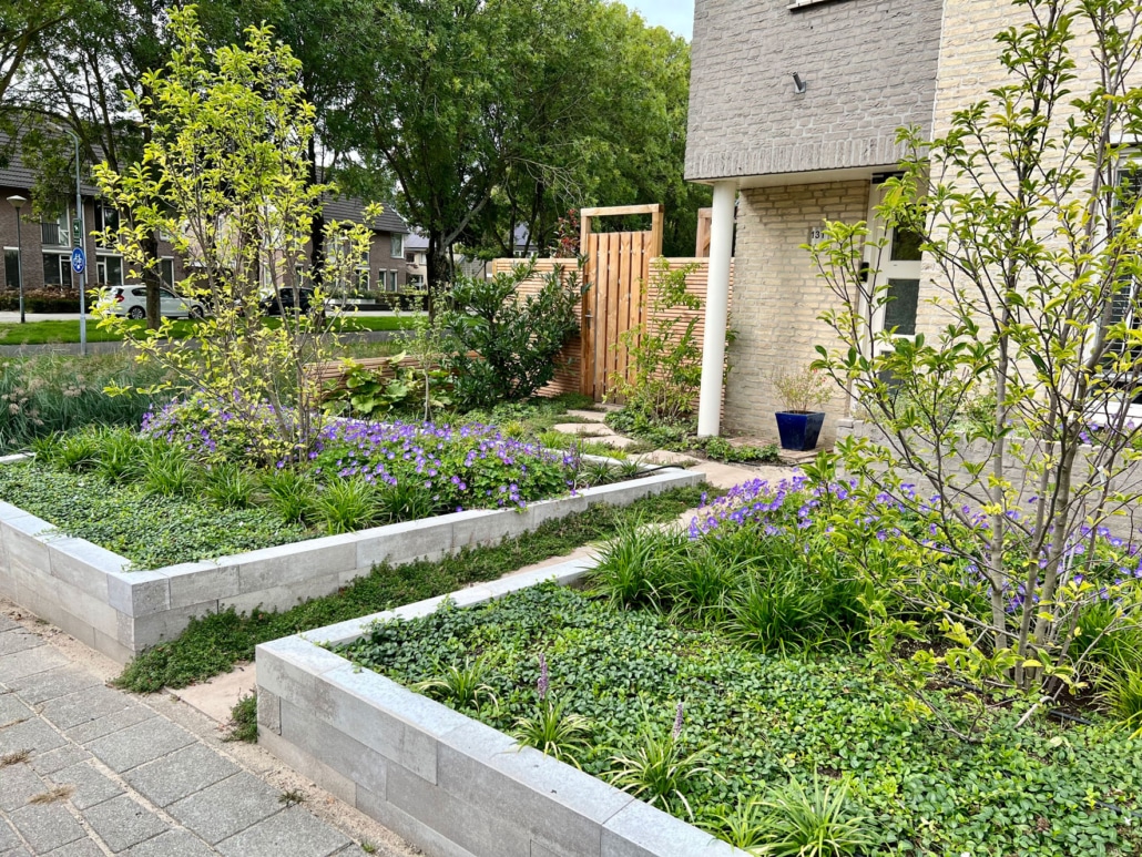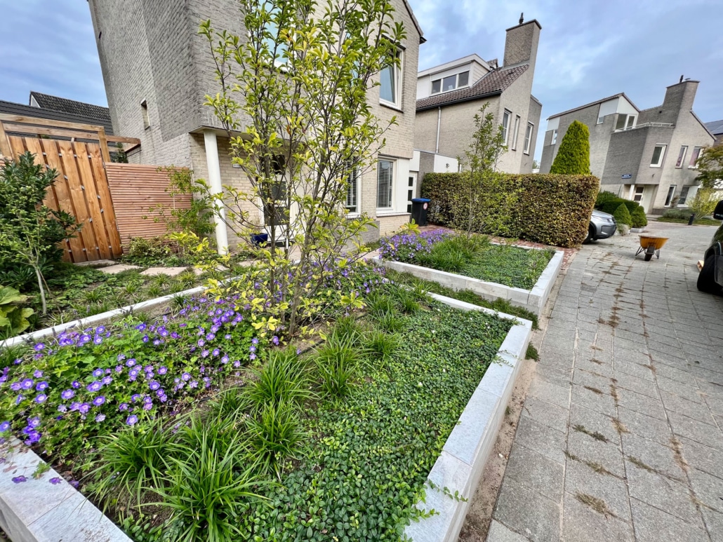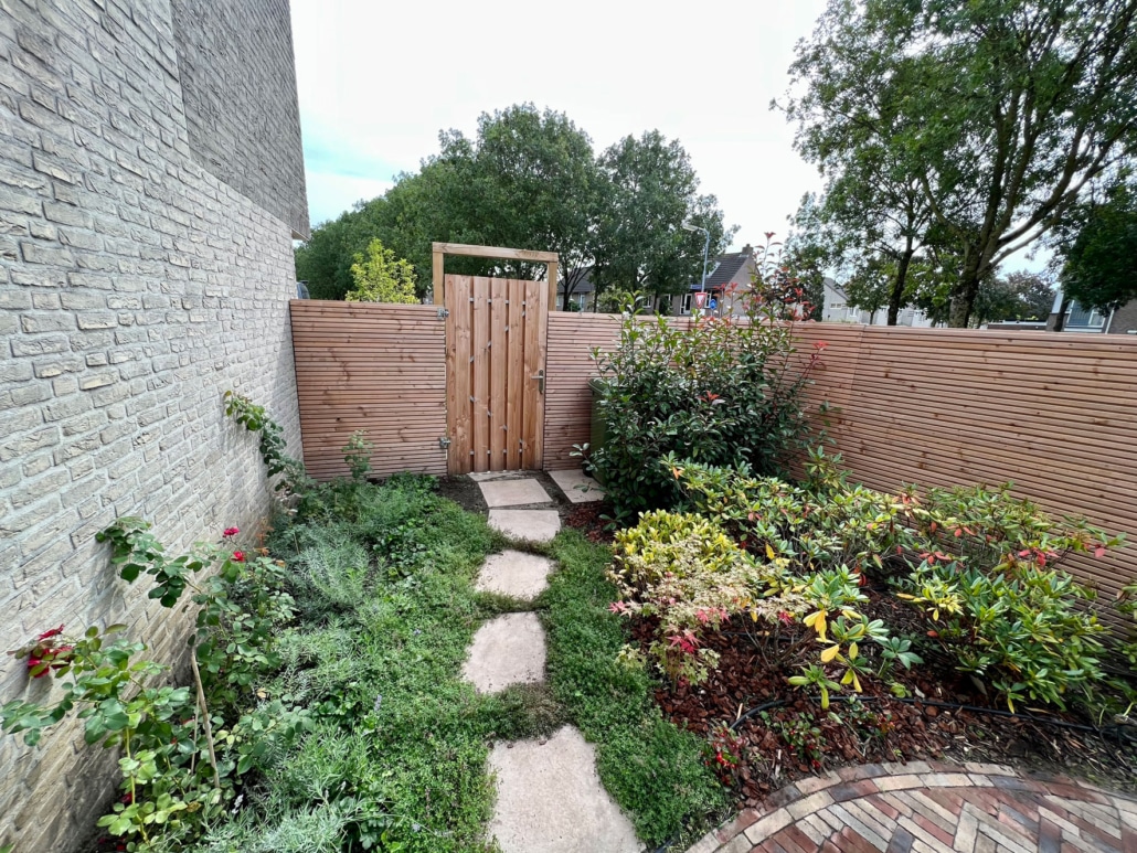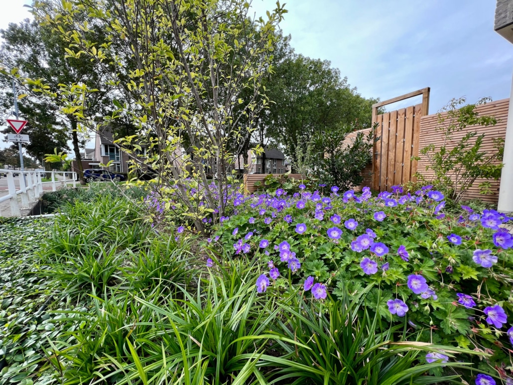 Mevrouw wilde geen strakke, kille tuin. Het mag leven! Met een grote verscheidenheid aan planten hun eigen weg vinden, met ene speels aangelegd looppad en met waaltjes in diverse kleurtinten. Zo hebben we een sfeervolle tuin mogen creëren waar het woord “saai” nooit plaats zal krijgen.