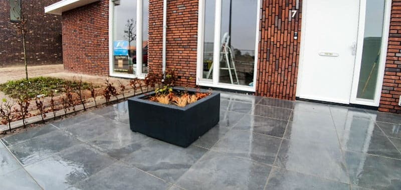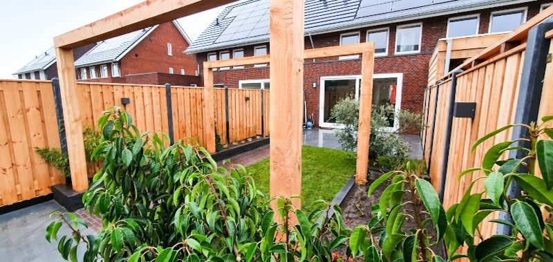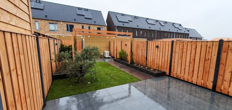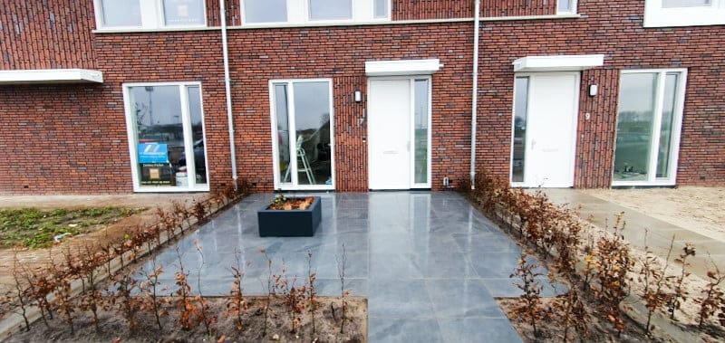 Deze opdrachtgever in Rosmalen heeft een nieuwbouwhuis waarvan de voortuin en achtertuin nog een grote zandbak zijn. Omdat het een nieuwbouwhuis betreft, hoeven we deze niet eerst leeg te halen met bijvoorbeeld bestrating en bomen. We hebben alleen zwarte grond eruit gehaald en ophoogzand erin gelegd. Hierdoor konden we snel beginnen met het aanleggen van een nieuwe tuin.
