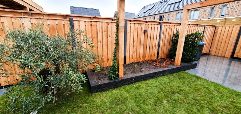 De wens van de opdrachtgever was om eerst – samen met de hovenier – een tuinontwerp te maken. Materialen die in het tuinontwerp terug moesten komen waren een olijfboom, gebakken waaltjes, borders met beplanting, keramische tegels (60 bij 60) en een pergola om sfeer en hoogte te creëren in de tuin. Na een akkoord op het tuinontwerp en de passende offerte, konden we beginnen met de tuinaanleg.