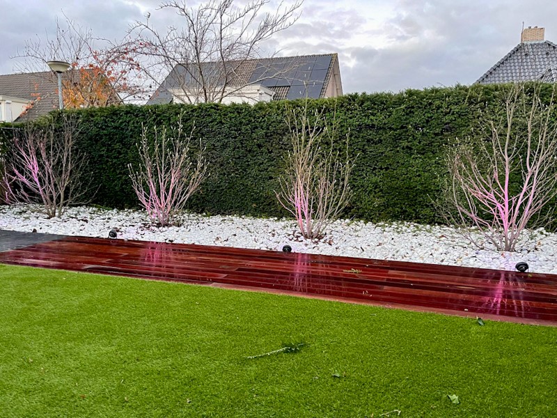Koopt men een nieuw huis, dan verandert men het interieur van de woning zodat alles in een gewenste stijl is. Bij een tuin is dit eigenlijk niet anders. De oude tuineigenaren hadden een andere smaak dan de nieuwe bewoners uit Kerkdriel. Tijd voor een tuinrenovatie dus! Tijdens een tuinrenovatie kunnen we ervoor kiezen een deel van de tuin te behouden of alles compleet te vernieuwen. In het geval van deze tuin in Kerkdriel is de tuin vrijwel volledig vernieuwd. Van terrastegels tot beplanting en tuinverlichting. De wens van de klant was een strakke, moderne tuin, met een mediterraans tintje. Björn heeft zelf het tuinontwerp gemaakt en de wensen van de klant erin verwerkt. Van Hout Tuinprojecten heeft het project begeleid van tuinontwerp tot het tuinaanleg.